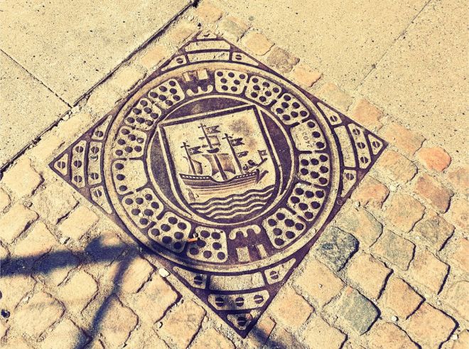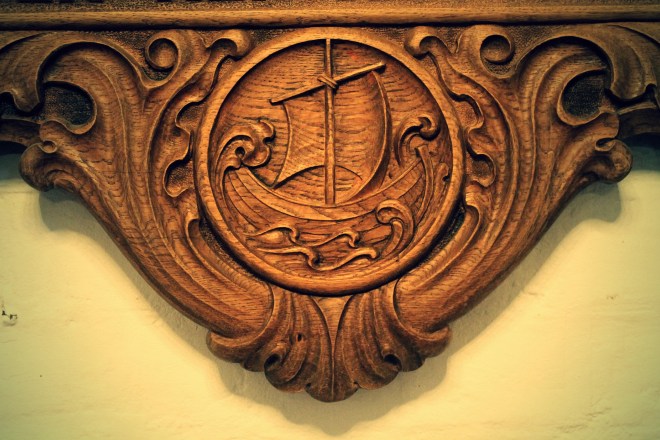 Since 1885 at least, the seal of Nykøbing Falster is a ship. You can find it in different places in the town, the most visible being on the ground and at Klosterkirken (The Abbey Church).
