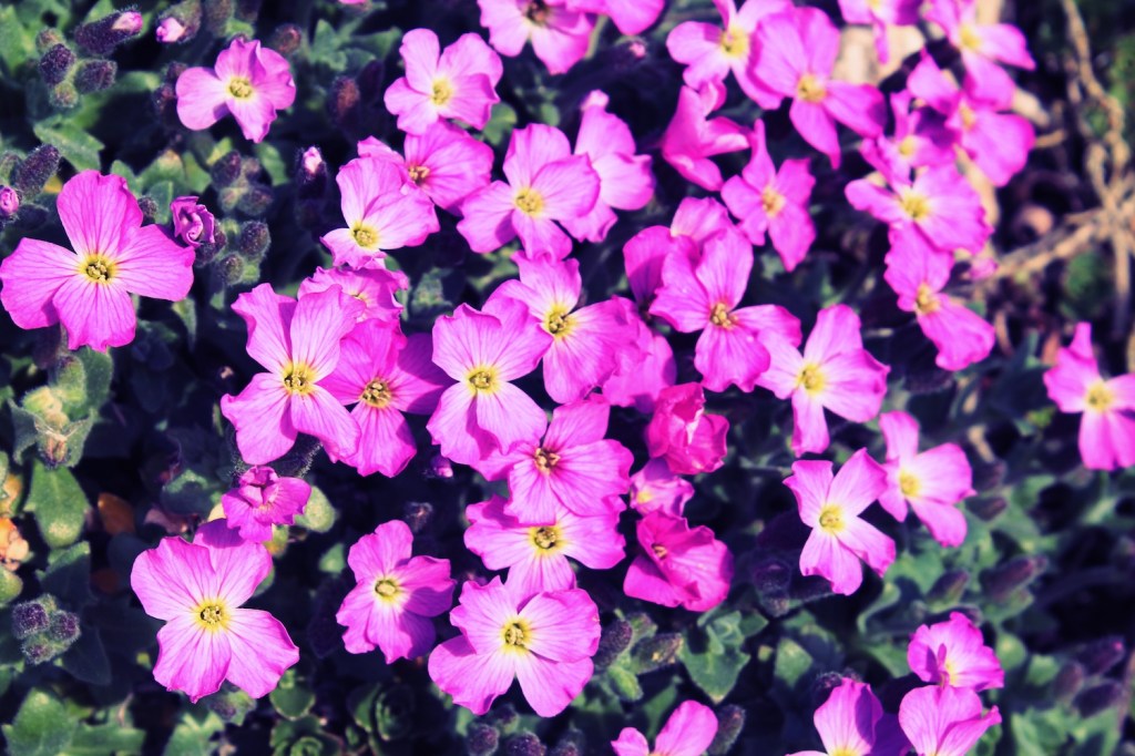 Last Autumn (2018) has been absolutely fantastic in terms of colours. This 2019 Spring, I was amazed by the very numerous vibrant flowers at Strandboulevarden, along the Guldborgsund strait ! The most vibrant ones are various cultivars of Aubrieta. It’s easy to see why the genus got its name from Claude Aubriet, a French flowers painter. Clinging to the wall in a flow of mauve flowers, the purple rock cress is among the first to offer an explosion of colours at the beginning of the spring. Among few other species, I also saw some timid violets, that I don’t remember seeing the former years.