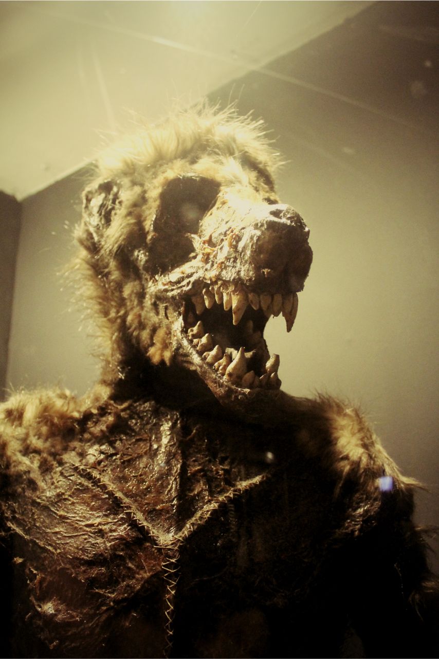 Also know as “werewolf”, this specimen of Homo lupus belongs to a species of bipedal hominid, related to both Homo sapiens and Homo vampyrus (the vampire). The wolf-like characteristics might be the result of a genetic mutation caused by a virus. This very specimen is a 15 years old female, who probably died of starvation. She was the last piece collected by the anthropologist Edward Harrell who worked alongside Thomas Merrylin.