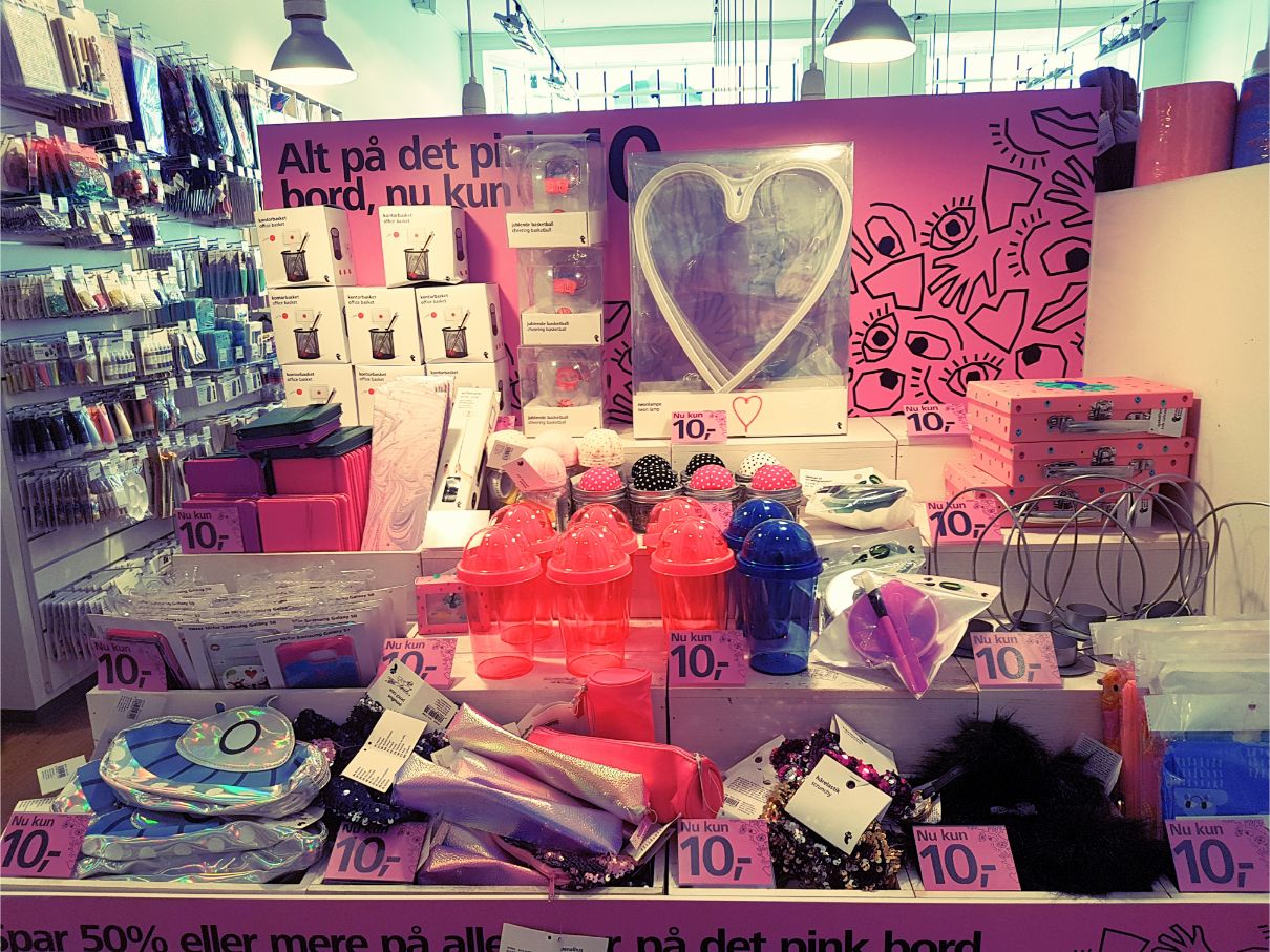 The shop is located in the heart of the town, in the main pedestrian street, at Jernbanegade 6B. According to what they say on their website, Flying Tiger Copenhagen claims they have what you need (pencils, handcream, batteries, napkins…), what you dream of (design lamp, embroidered cushion, tea pot…) and things you didn’t know existed. In the last category, let’s say Flying Tiger is very creative ! Flying Tiger Copenhagen’s dedicated design team has won numerous international design awards for their imaginative work.